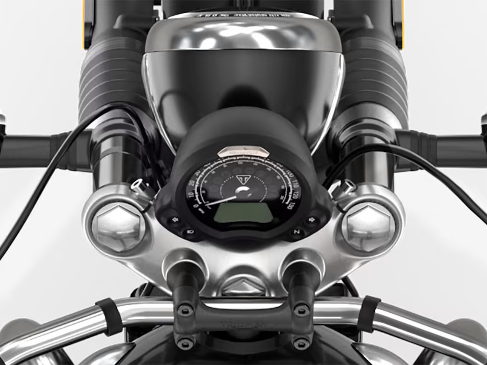 The feature-packed Speedmaster instrument setup is controlled via an intuitive handlebar mounted scroll button, and now features a dial face and bezel, with premium Bonneville branding. - SIGNATURE SPEEDMASTER FEATURES