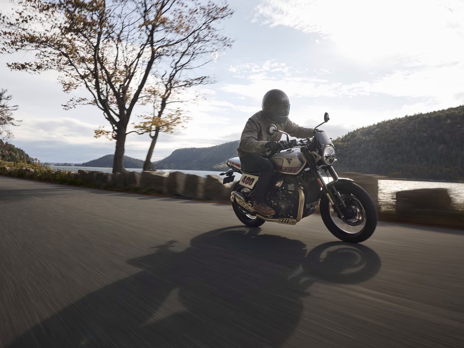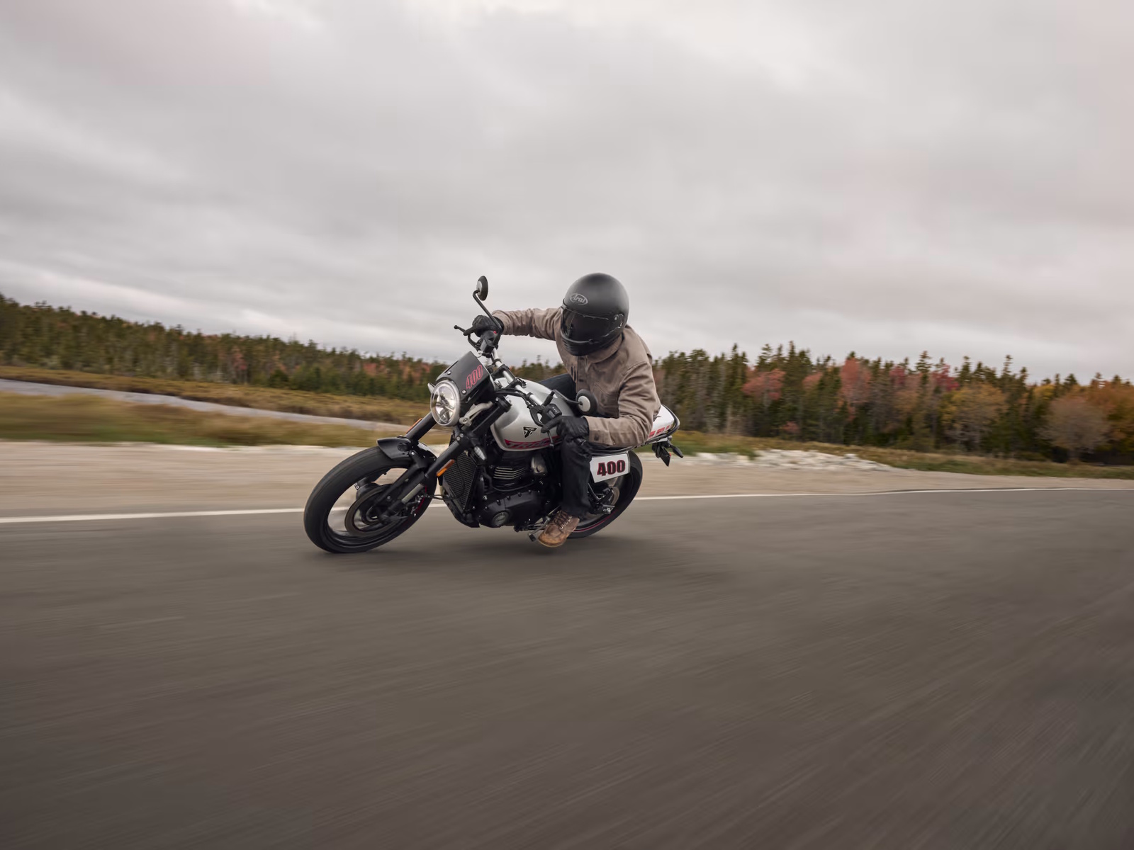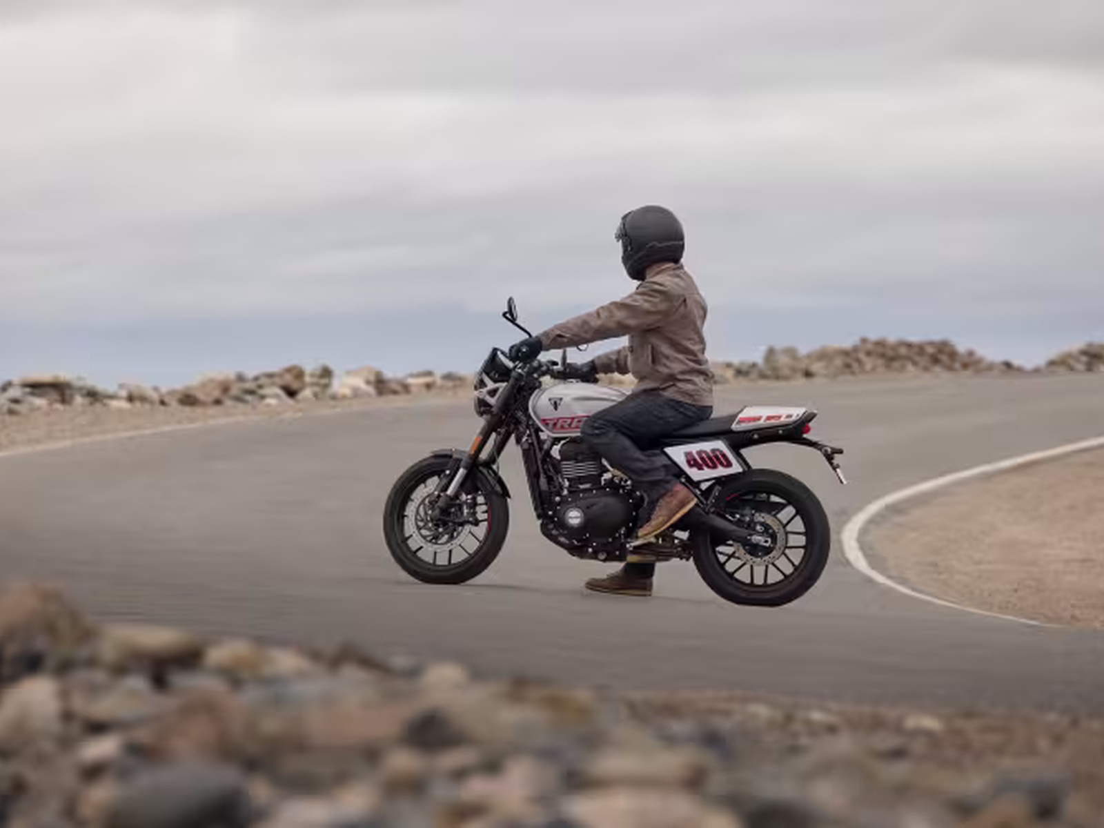Upright and elbows-out, the Tracker 400 offers a distinctive flat-track riding style.